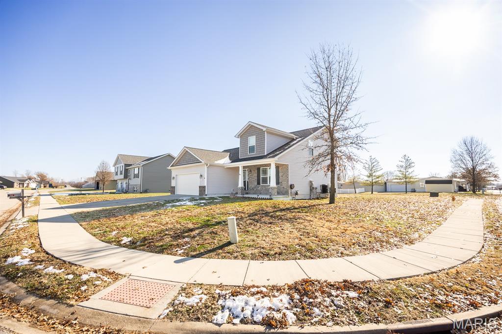 Newer build in 2023, Charming 4 bedroom, 3 bath home, bright open living area, modern kitchen on a Large Corner Lot and 2 car garage. Kitchen features an abundance of custom cabinetry and granite countertops, stainless steel appliances with dining area, leading to sliding glass doors onto the patio. Main level boasts the Primary En-Suite, Laundry Room, additional Drop Zone off the garage entry, and a Powder Room. The Primary Suite with large walk-in closet and spacious bathroom with a shower is the perfect retreat. Second floor features 3 bedrooms and Full Bath with shower/tub combo. Lower Level basement is ready to be finished with a rough in for a full bathroom, a passive Radon System, and a Lifetime waterproof warranty. Home was built with lifetime roofing shingles and lifetime LVP, Luxury Vinyl Plank flooring. Quick access to interstate 255, schools, parks, restaurants and shopping.