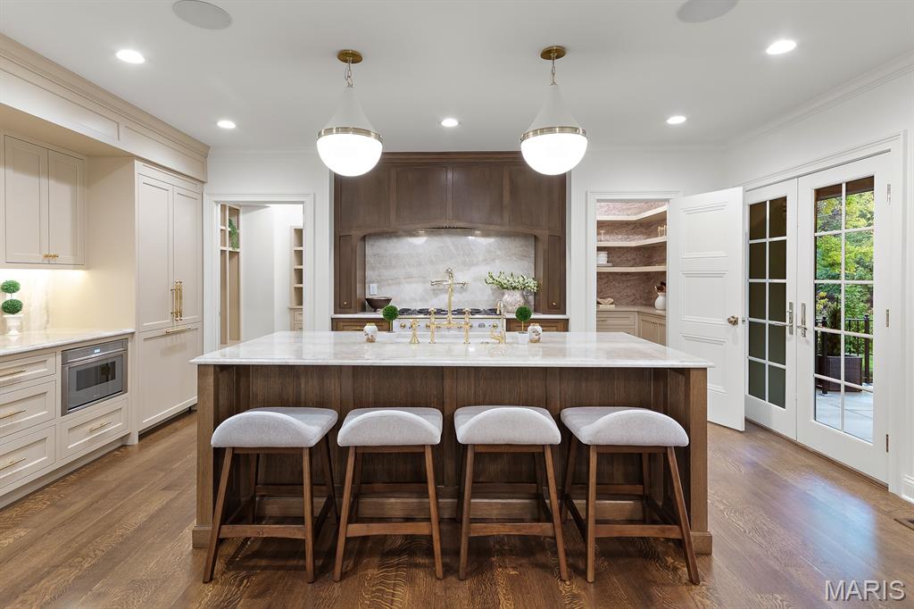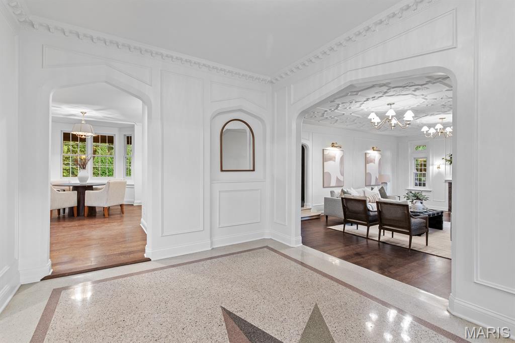 Rebuilt & remarkable. Custom 4 bed, 4 en suite bath, 2 half bath designer redone custom gem in Clayton school’s Lake Forest Subdivision. Entirely all new systems, 2nd floor laundry room, outdoor living, finished lower level with bar, rec, & half bath. The appeal of this home is second to none & the features and finishes all impress. Interior and exterior were meticulously rebuilt to the highest standards & it shows. Exterior dazzles upon arrival with amazing turret, slate roof, copper gutter, dramatic roof line and handsome street presence. Interior is a masterpiece of 2025 over the top finishes & restored historic features, amazing layout. All custom and designer throughout including lighting, plumbing, mill work, cabinets, floors, & unparalleled appliances. La Corneu range, built in refrigeration, custom cabinets, walk in pantry!, drop zone & locker area, wet bar, open to outdoor living / level yard, amazing living room. Up has 4 en-suites, a primary suite you just do not find in Clayton schools, spacious landing with a in turret domed ceiling. Finished lower level is inviting & all updated with spacious rec area, east coastal inspired wet bar; bath, and ample unfinished but finished storage. Even the new duct work & plumbing systems are awesome to look at. Professionally completed in & out, well thought out, & spotlessly clean. This house has numerous features usually only seen in high end custom new construction: Ie primary suite is large, coffered, two walk in closets, & amazing marble bath suite with all the features. 4 en suite bedrooms. Upper level laundry room. low volt wiring and speakers, walk in pantry, convenience drop zone & lockers, EV station, useable & well appointed lower level, covered outdoor living, the list goes on...