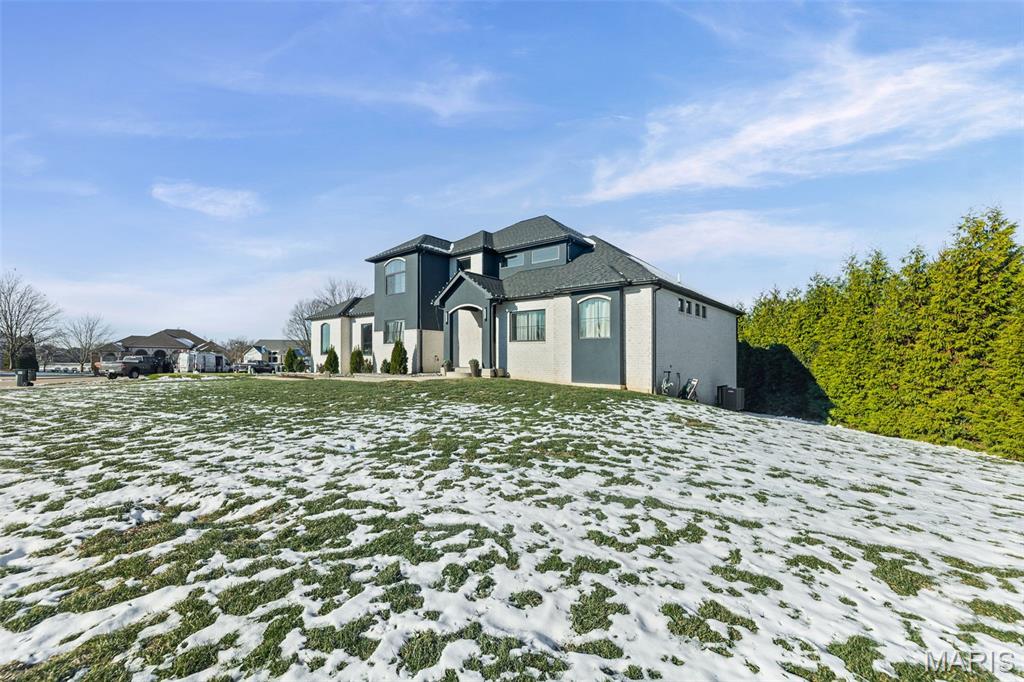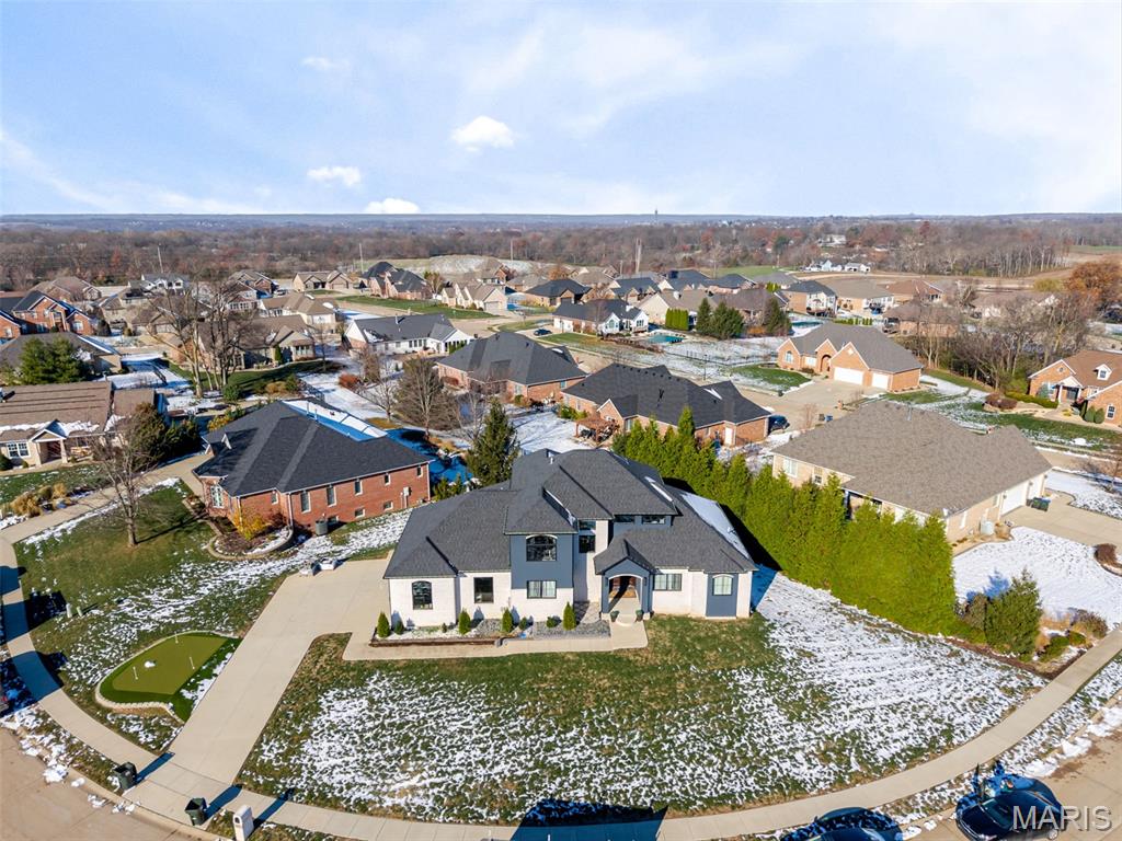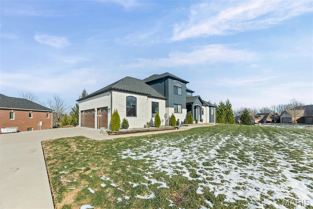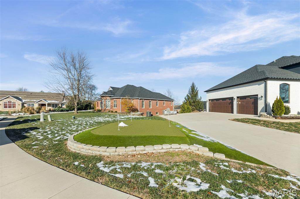 Discover this stunning, 3-year-old modern 1.5-story home where design, functionality, and lifestyle come together seamlessly. The kitchen serves as the true focal point, featuring a large island with seating for four, perfect for casual meals, entertaining, and gathering with friends. A bright, open-concept floor plan enhances the home’s spacious feel and is filled with natural light throughout. Contemporary finishes shine with modern fixtures and a sleek fireplace that anchors the living space. The main level offers exceptional convenience with primary suite, a guest bedroom, a dedicated laundry room, and a stylish half bath. Upstairs, you’ll find two additional bedrooms connected by a Jack-and-Jill bathroom, plus a versatile loft space ideal for a home office, playroom, or reading retreat. The large 3 car garage offers room for parking and storage. The walkout basement already includes a finished full bath and some framed walls, providing a head start toward future expansion and includes an area prepped for the ultimate golf simulator setup. Step outside to enjoy your own side yard putting green, perfect for relaxing or sharpening your short game. This home effortlessly blends modern comfort with thoughtful design, move-in ready with room to grow.