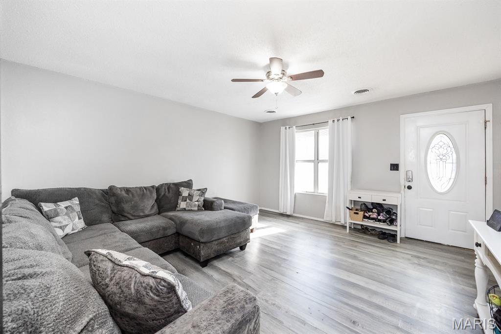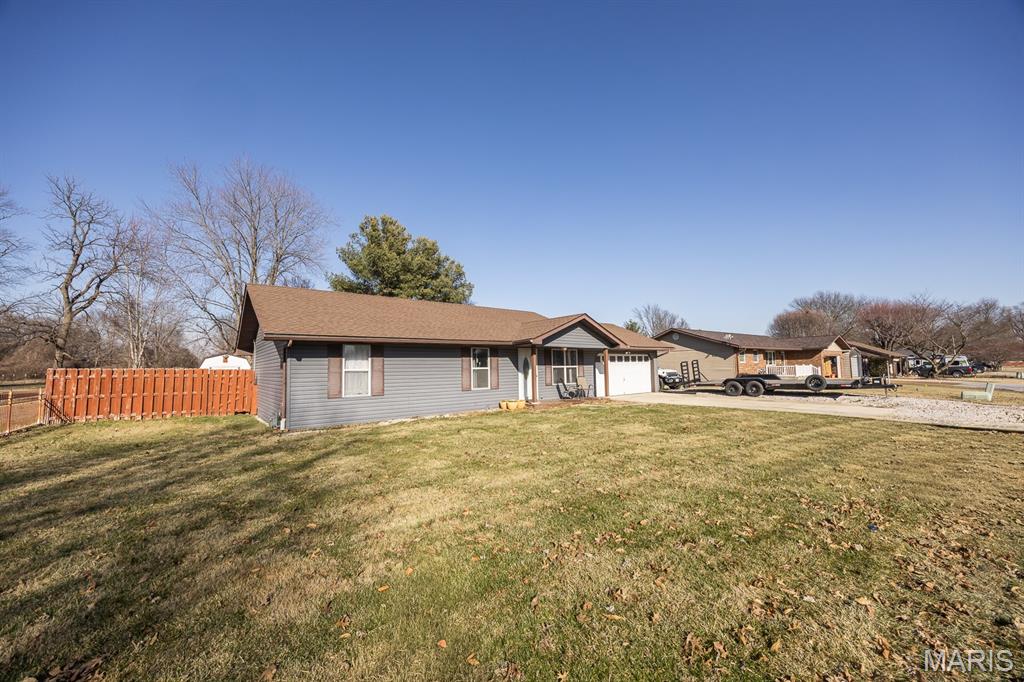 Step into this inviting 3-bed, 2-bath home featuring an open living room that flows into a spacious eat-in kitchen with pantry. The primary bedroom offers a generous walk-in closet, and luxury vinyl plank flooring extends throughout the home for a clean, modern look. Enjoy the convenience of main-floor laundry and the functionality of a 2-car garage. Outdoor living shines with a patio, above-ground pool, and a fully fenced yard—perfect for relaxing, entertaining, or play. Buyer to verify all information.