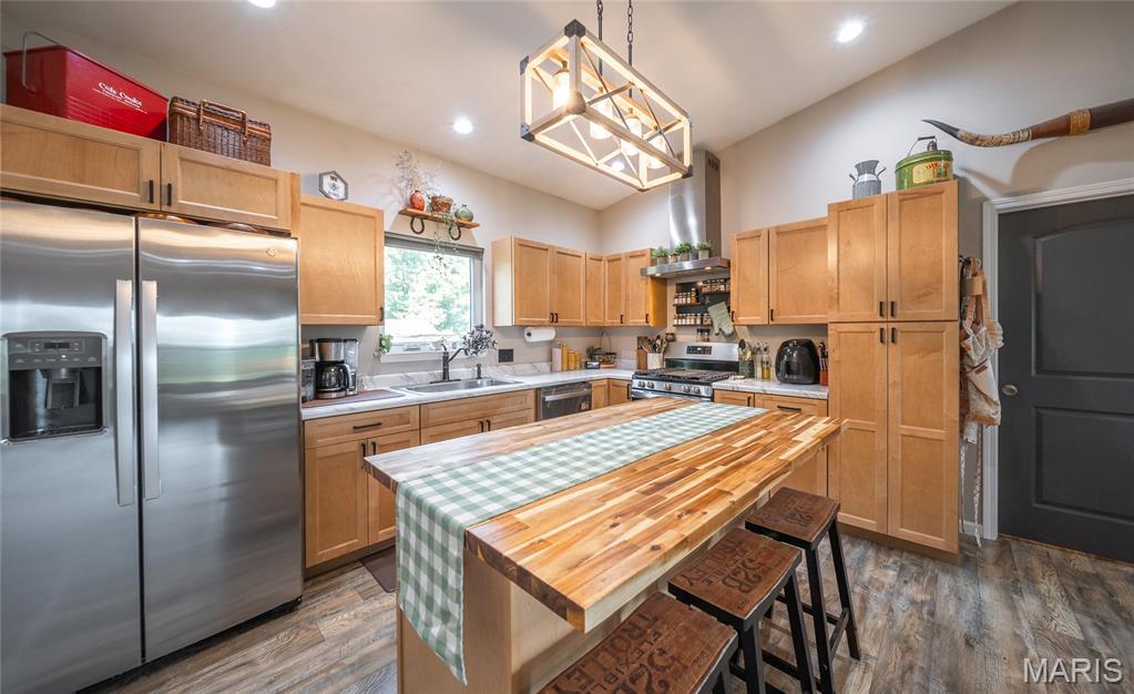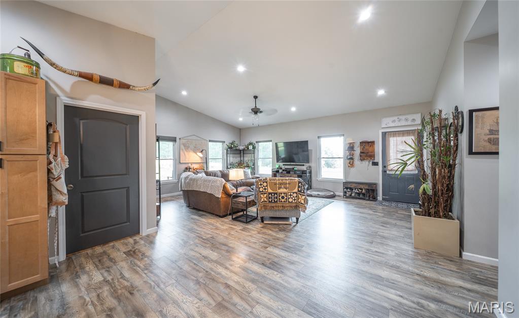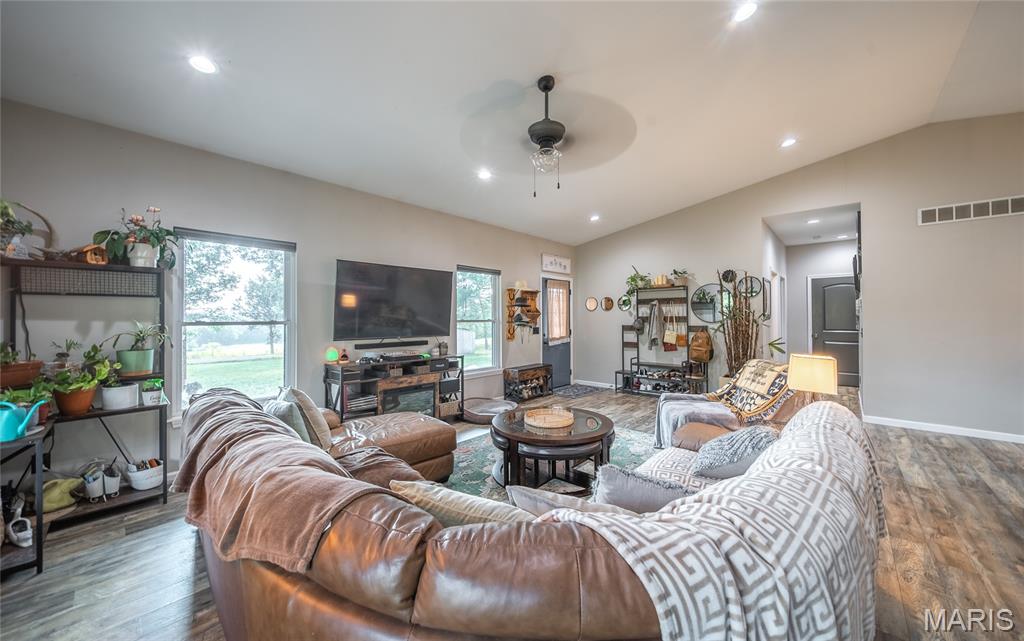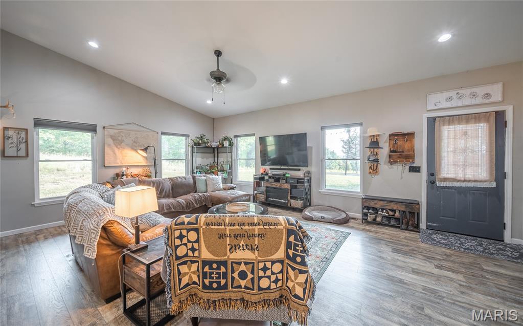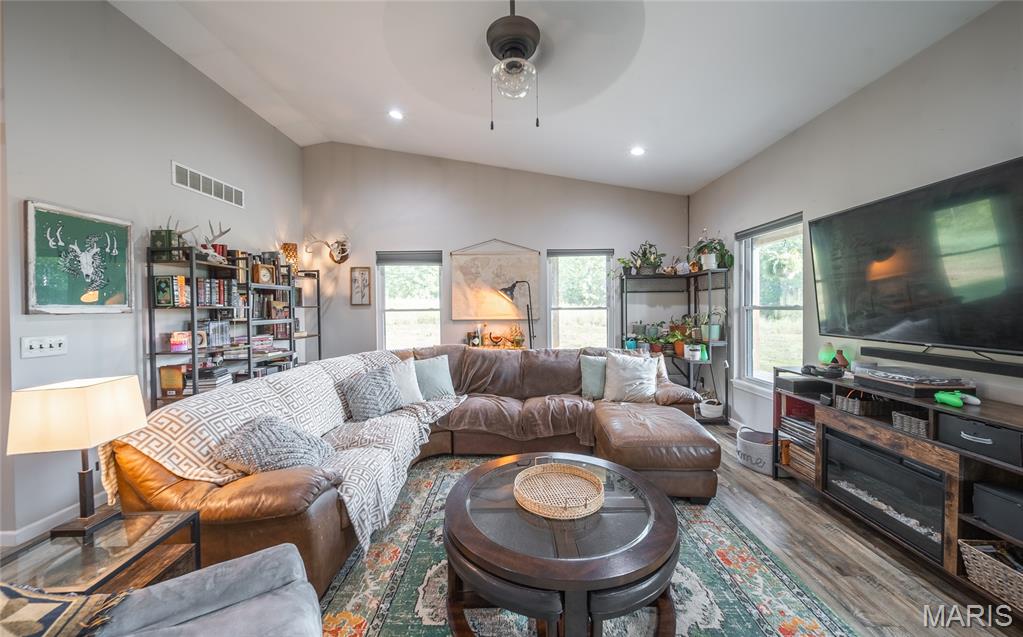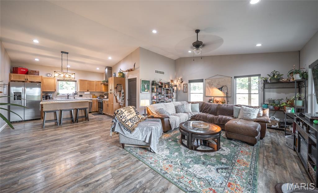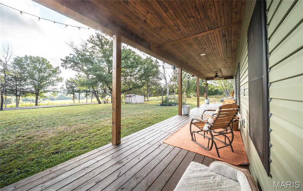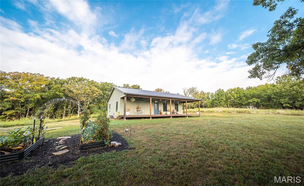 This beautiful 2-bed, 1-bath country home sits on 7.7 acres & combines modern finishes with rustic charm. Built in 2022, it offers the peace of country living with the convenience of updated systems & stylish design. A huge wrap-around porch welcomes you to sit back & enjoy the sweeping views, making it the perfect spot for morning coffee or relaxing evenings outdoors. Inside, the open floorplan & vaulted ceilings create a bright & airy feel, enhanced by luxury vinyl plank flooring throughout. The kitchen is thoughtfully designed with soft-close cabinets, a gas range with hood vent, a large island for gathering & plenty of storage and workspace. The primary bath features a double vanity & dual shower heads, while both bedrooms are complete with walk-in closets for added convenience. An additional corner shower in the laundry/utility area is perfect for cleaning up after working outdoors or for use with pets. Practical upgrades include a durable metal roof, recently replaced siding, a tankless water heater & a high-efficiency HVAC system, ensuring both comfort & energy savings. Outside, you’ll find a 450 sq. ft. shed & a 160 sq. ft. shed—ideal for storage, hobbies, or workshop space. The school district for K-8th grade is Strain-Japan R-XVI. Located just 11 miles from Sullivan, 10 miles from Bourbon & 16 miles from Cuba, this property offers the best of both worlds: peaceful country living with quick access to nearby towns. Don't wait. Schedule your showing today.