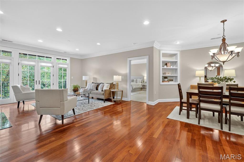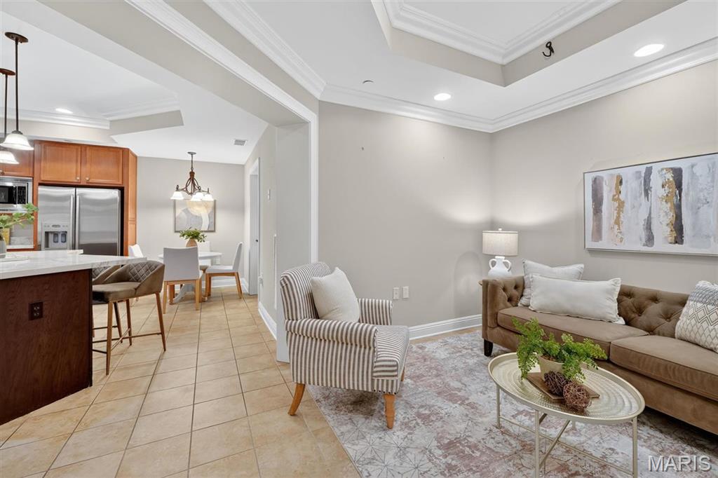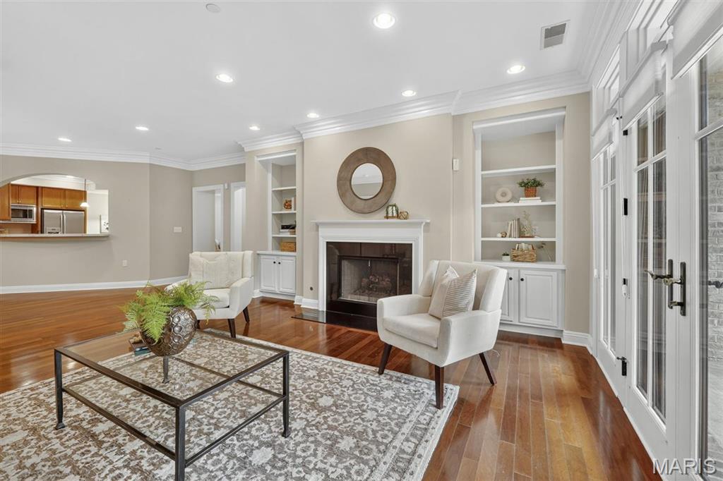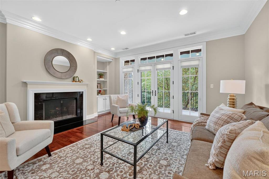 This gorgeous first-floor unit at the Laumeier Place condos might just be the ideal “easy living” property in all of Sunset Hills. Hardwood floors and neutral paint tones make this 100% move-in ready, while the southern exposure gives it fabulous light and views. The great room allows plenty of gathering space for both a warm setting around the gas fireplace as well as a spacious dining area to enjoy more formal occasions. And you can’t miss the private balcony right through the stunning glass French doors. The kitchen overlooks it all, with rich wood cabinetry, a center island, and room for a bistro table in the eat-in area. The most charming study/den is perfectly situated just off the kitchen, making this entire area feel like a warm, informal room for everyday living. The master suite has large windows along its south wall, with blinds for privacy and a wonderful walk-in closet. There is an additional bedroom, also with a south-facing view; A full laundry room is located inside the unit. Please note: 2 parking spots(#16 and 17) and a private storage locker (#1) are located in the basement garage.