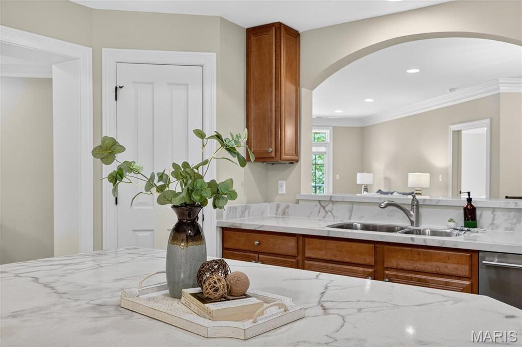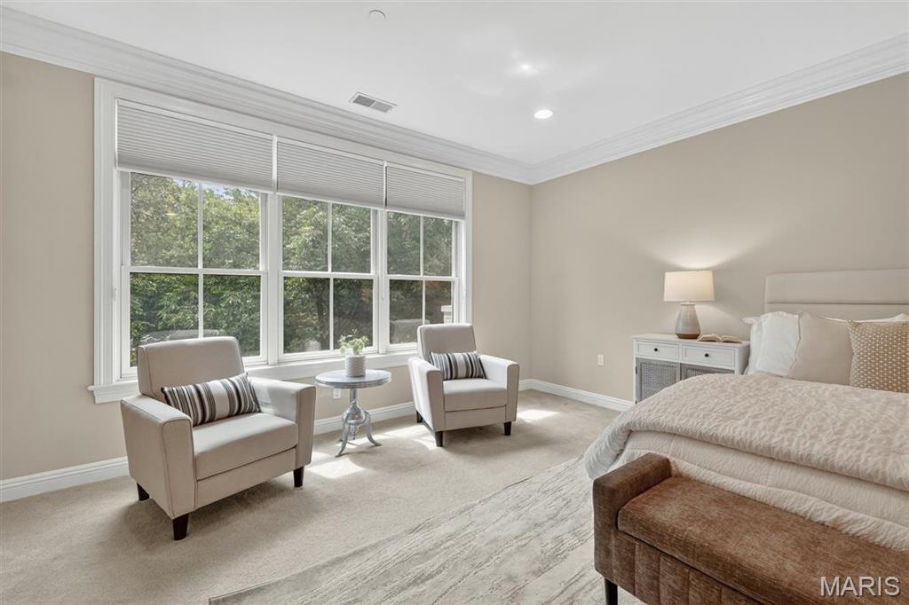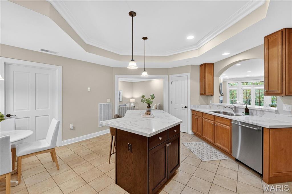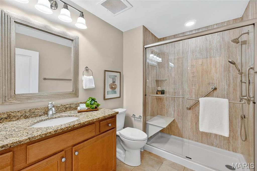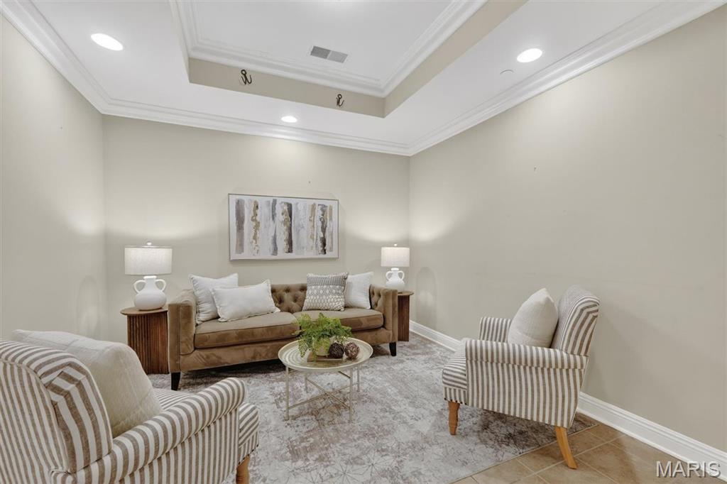 This gorgeous first-floor unit at the Laumeier Place condos might just be the ideal “easy living” property in all of Sunset Hills. Hardwood floors and neutral paint tones make this 100% move-in ready, while the southern exposure gives it fabulous light and views. The great room allows plenty of gathering space for both a warm setting around the gas fireplace as well as a spacious dining area to enjoy more formal occasions. And you can’t miss the private balcony right through the stunning glass French doors. The kitchen overlooks it all, with rich wood cabinetry, a center island, and room for a bistro table in the eat-in area. The most charming study/den is perfectly situated just off the kitchen, making this entire area feel like a warm, informal room for everyday living. The master suite has large windows along its south wall, with blinds for privacy and a wonderful walk-in closet. There is an additional bedroom, also with a south-facing view; A full laundry room is located inside the unit. Please note: 2 parking spots(#16 and 17) and a private storage locker (#1) are located in the basement garage.