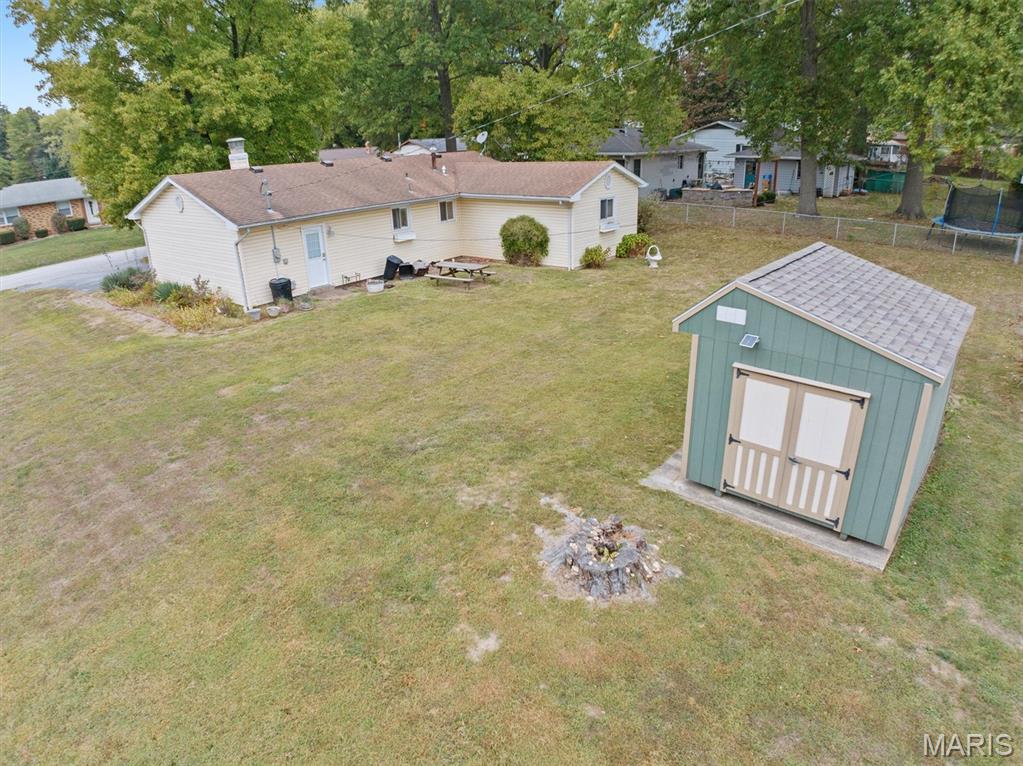 This charming, updated ranch in the sought-after Wolf Branch School District offers comfortable single-level living at a great value. Inside, find an open-concept living room and kitchen with wood floors and a wood-burning fireplace. The kitchen features a granite-topped island with seating, ample cabinetry, and included appliances. The spacious primary suite includes an updated bathroom and a flexible bonus room—perfect for an office, playroom, family room, or a non-conforming third bedroom. A second bedroom and updated guest bath complete the living space. The attached one-car garage includes extra storage, laundry space, and an upright freezer. The level backyard features a patio and a shed for outdoor storage. Conveniently located near shopping, dining, schools, and just 20 minutes from Scott AFB or Downtown St. Louis. Don’t miss the opportunity to see this property!