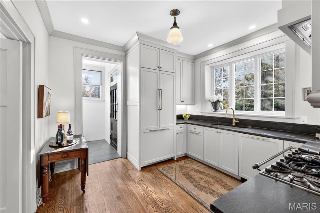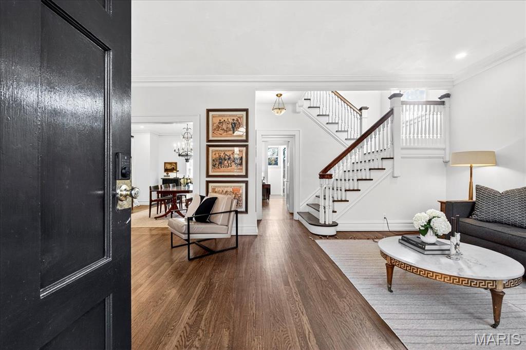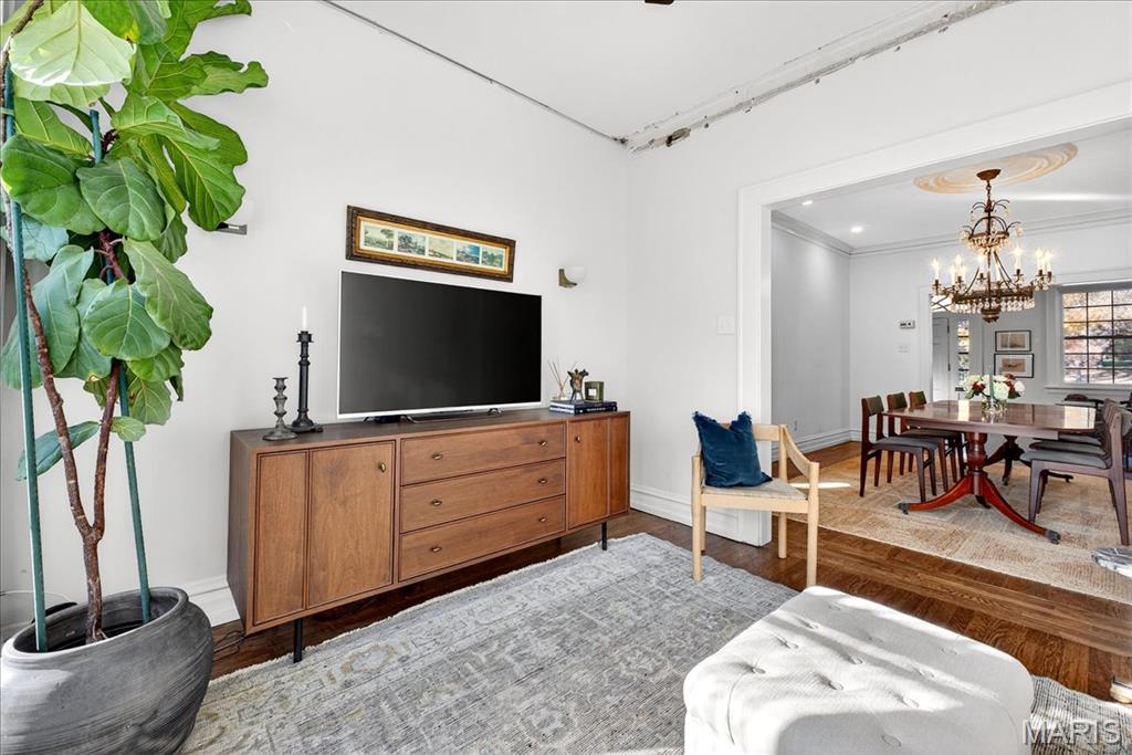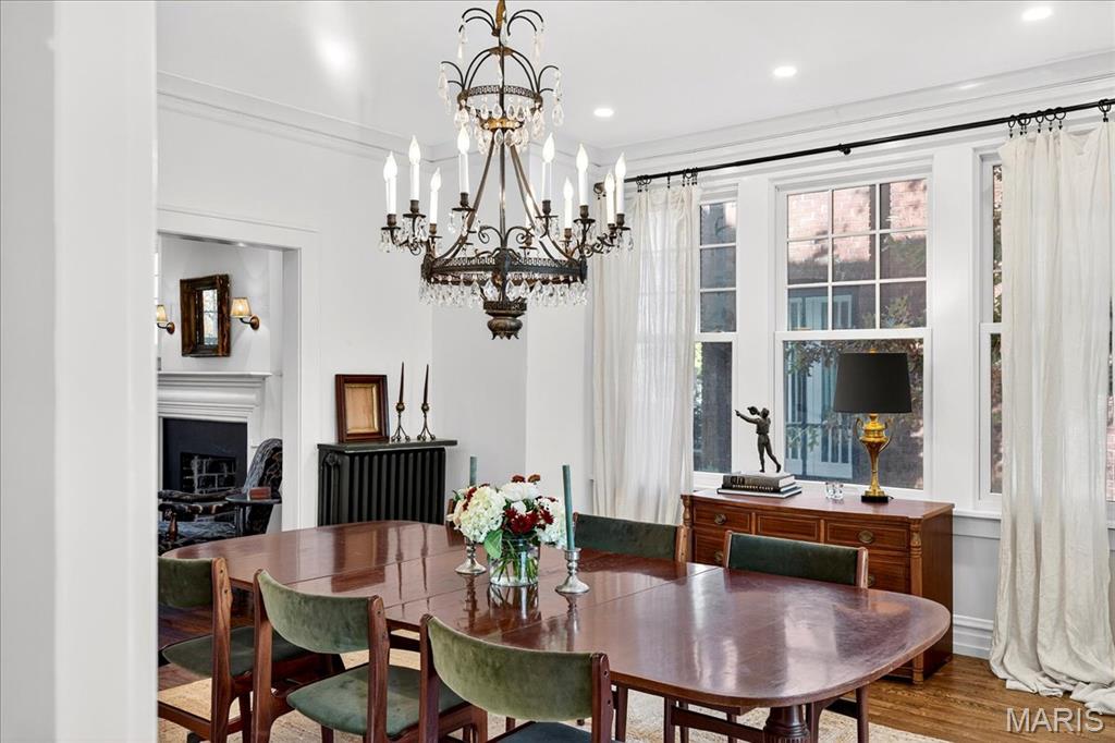 Stunning 5 bed, 2 bath home with nearly 3,000 sq ft of living space! Welcome to this beautifully updated historic gem located in the heart of sought after University Heights neighborhood & just minutes from the U-City Loop & Washington University. The main floor boasts newly refinished hardwood floors & all new lighting, including elegant sconces, hand picked vintage chandeliers, & modern recessed lighting. Timeless character shines throughout with expansive molding & 7" baseboards. The spacious living room features a gorgeous fireplace with new gas insert & flows seamlessly into a formal dining room. The completely renovated kitchen is a chef’s dream with high end built-in appliances, custom hood, custom cabinetry, & granite countertops. A charming sunroom & mudroom complete the main level. Upstairs, you'll find more refinished hardwoods, upgraded lighting, & large primary bedroom with a 2nd cozy sunroom. A new 2nd floor laundry room adds everyday convenience. The new show stopping hall bath features custom tilework, a luxurious tub/shower combo, & stylish modern fixtures. 2 additional bedrooms complete the space. On the third level, you’ll find two more bedrooms and a second full bath ready for your personal finishing touches, offering the perfect opportunity to complete this stunning home to your taste. While the home has seen extensive updates, including new electrical, plumbing, and Renewal by Andersen windows, some finishing work remains, allowing you to add your own flair and value. Enjoy unbeatable walkability to dining, entertainment, parks, and more! Bonus: Architectural plans for stunning future addition available!