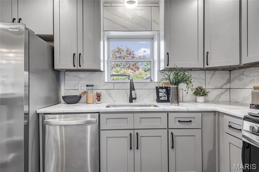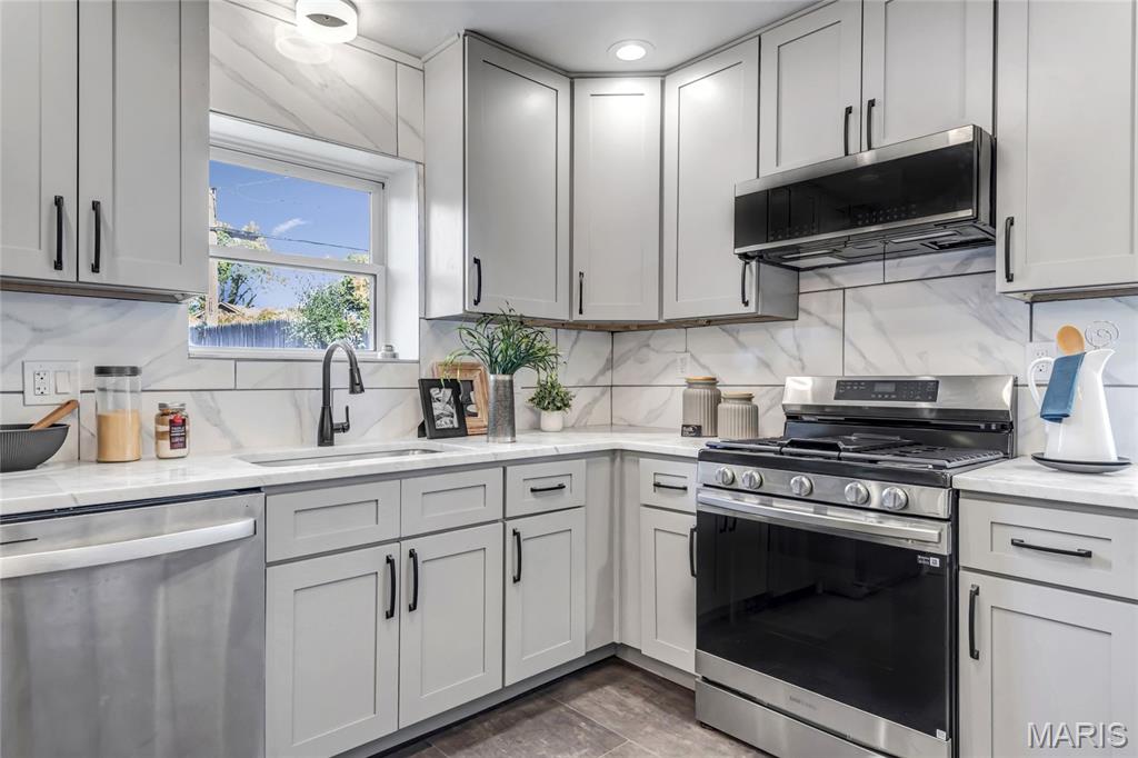 Massive room addition adds 400 SF. ALL-NEW PRIMARY BEDROOM w/ SPA TYPE SHOWER & WALK-IN CLOSET. Look at what else is NEW in this 3Br/2Ba ranch. New Architectural roof, Exterior and Interior Doors, New Hall Bathroom, New electric Panel, Plumbing, Kitchen Cabinets, Marble Counters, Shaker style cabinets, Breakfast bar and Pantry! New Stainless appliances including 5 Burner gas range, Refrigerator/Freezer with Ice Maker, Dishwasher. New HVAC & Water Heater. Thermal tilt-in windows, a wood-burning fireplace, New light fixtures. Garage with access to attic, New garage w/ opener. Fenced backyard w/ patio and a 2nd patio with pergola! Many interior features to love, plus the WOW! primary suite addition! Rebuilding U City with pride and excellence!