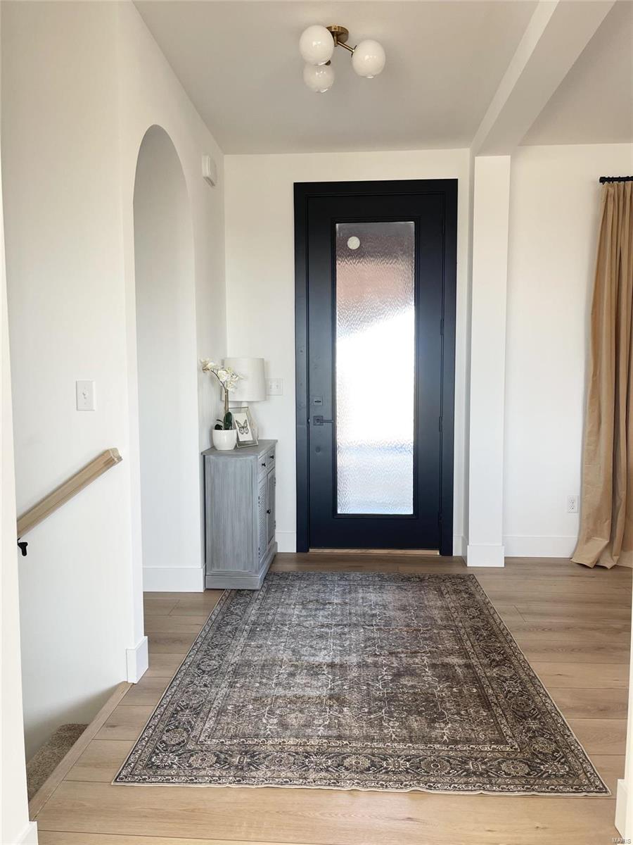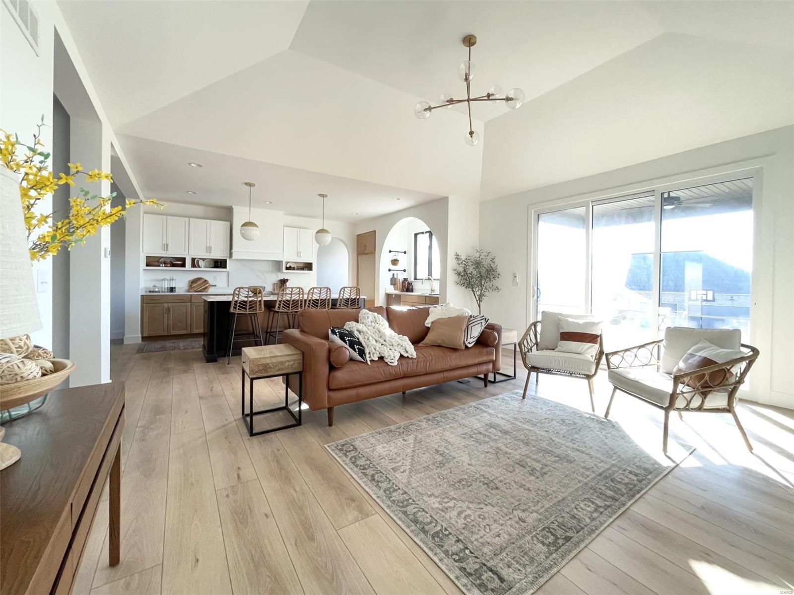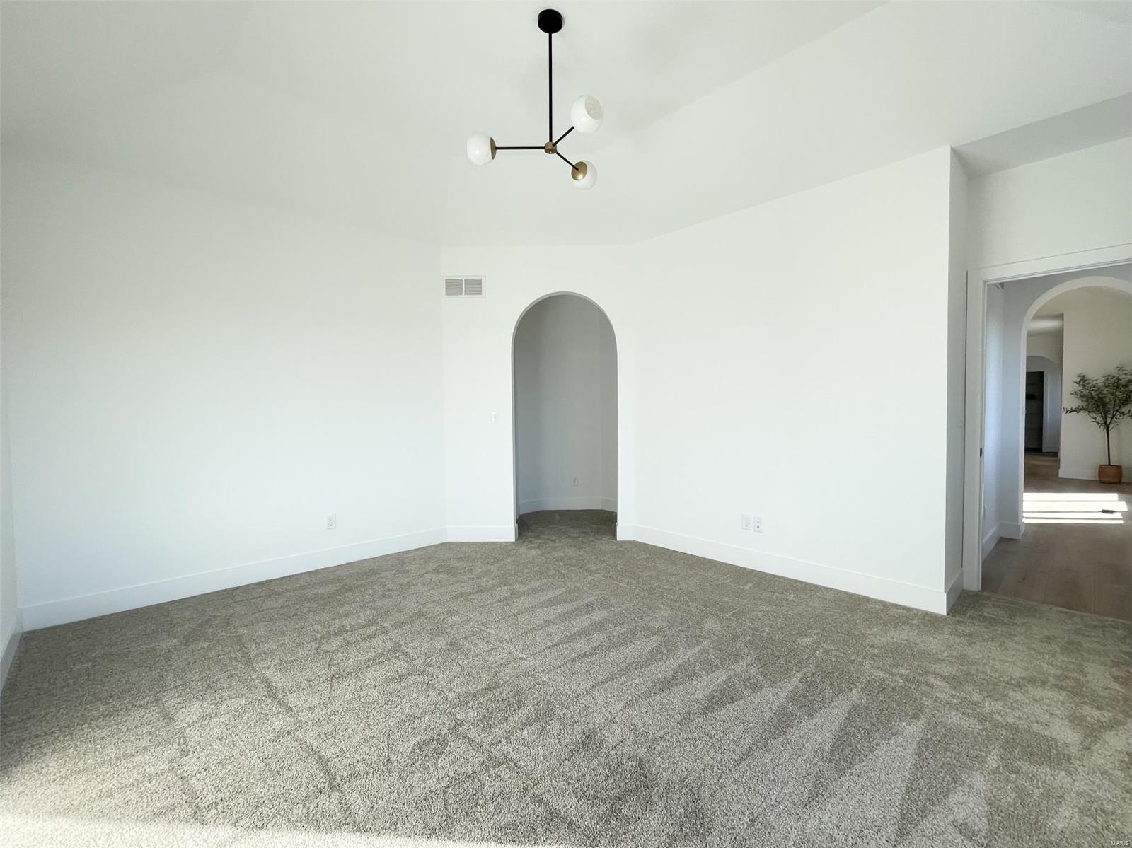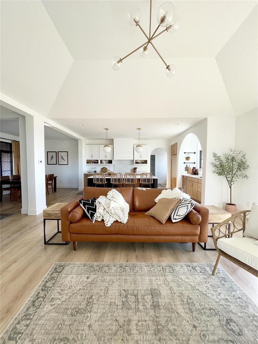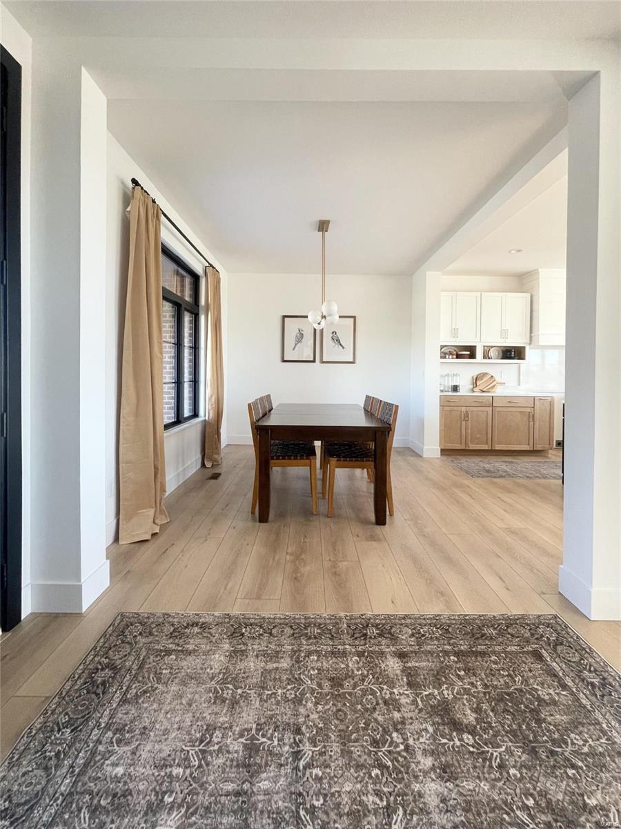 A Truly custom new construction home with one-of-a-kind floor plan. 4BR, 3 BA all brick ranch w/ premium black windows & 3 1/2 car (workshop or storage) side entry finished garage. Stamped concrete covered front porch. Open floor plan w/ chic finishes. 11’ tall Great Room ceiling w/ built ins both sides of fantastic modern linear fireplace. 8’ tall x 9’ wide patio door leads to brick edged rear covered patio. Kitchen has 8.5’ long island, pull out trash cabinet, custom hood vent, mixed wood cabinets w/ hardware, fantastic arch framing workstation sink under large window. luxurious veined Quartz countertop and backsplash. Deep walk-in pantry off mudroom. Main level primary suite w/ designer ceiling, vestibule to large walk in closet & primary bath w/ double sink & spa-like tile walk in shower. 2 other spacious bedrooms with wic, bath and laundry. Full basement w/ 3 egress windows, spacious family room, bed 4, 3rd bath, 2 unfinished rooms, and 9' pour. Grass seeded & appliance allowance.