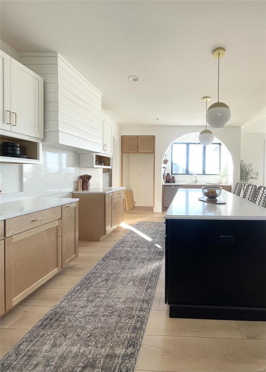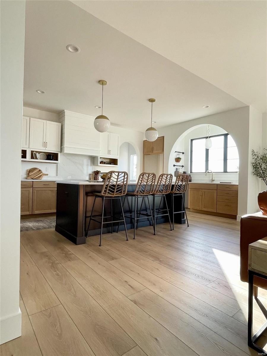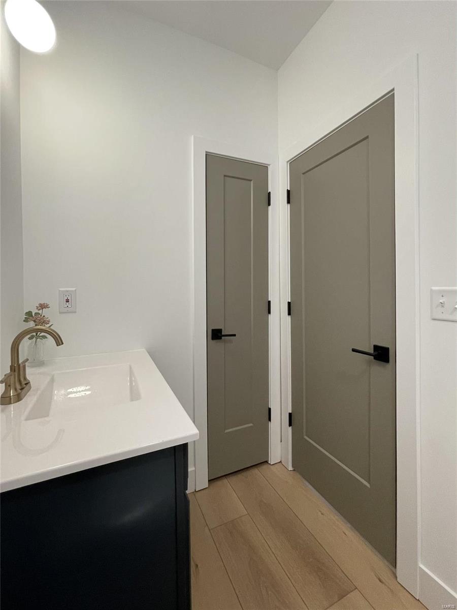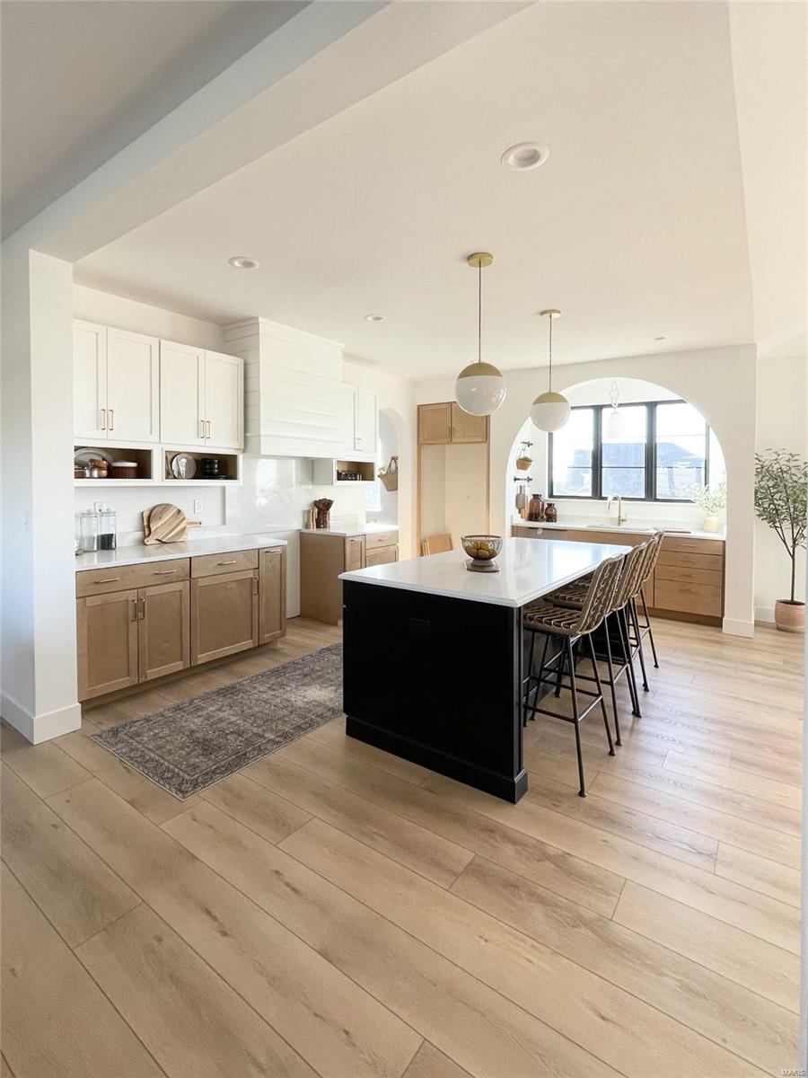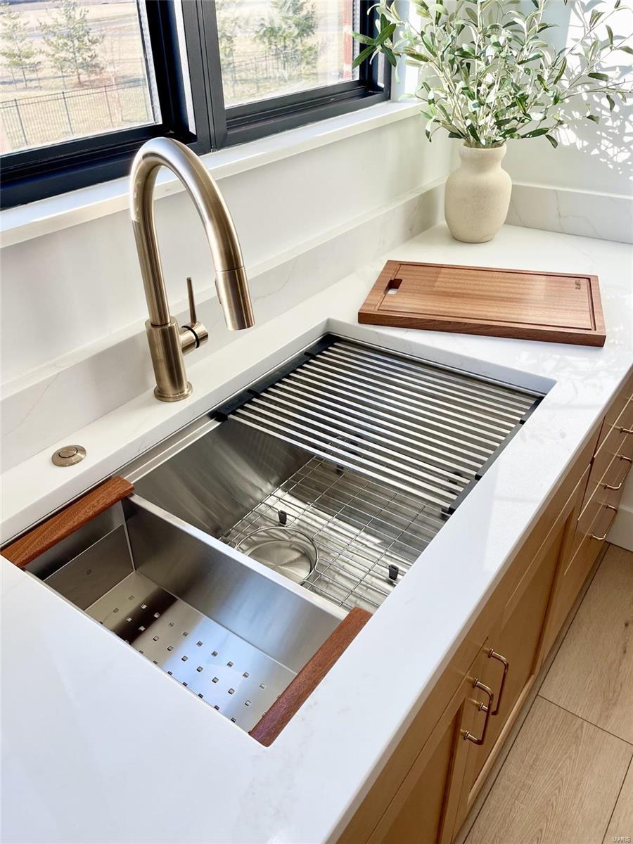 A Truly custom new construction home with one-of-a-kind floor plan. 4BR, 3 BA all brick ranch w/ premium black windows & 3 1/2 car (workshop or storage) side entry finished garage. Stamped concrete covered front porch. Open floor plan w/ chic finishes. 11’ tall Great Room ceiling w/ built ins both sides of fantastic modern linear fireplace. 8’ tall x 9’ wide patio door leads to brick edged rear covered patio. Kitchen has 8.5’ long island, pull out trash cabinet, custom hood vent, mixed wood cabinets w/ hardware, fantastic arch framing workstation sink under large window. luxurious veined Quartz countertop and backsplash. Deep walk-in pantry off mudroom. Main level primary suite w/ designer ceiling, vestibule to large walk in closet & primary bath w/ double sink & spa-like tile walk in shower. 2 other spacious bedrooms with wic, bath and laundry. Full basement w/ 3 egress windows, spacious family room, bed 4, 3rd bath, 2 unfinished rooms, and 9' pour. Grass seeded & appliance allowance.