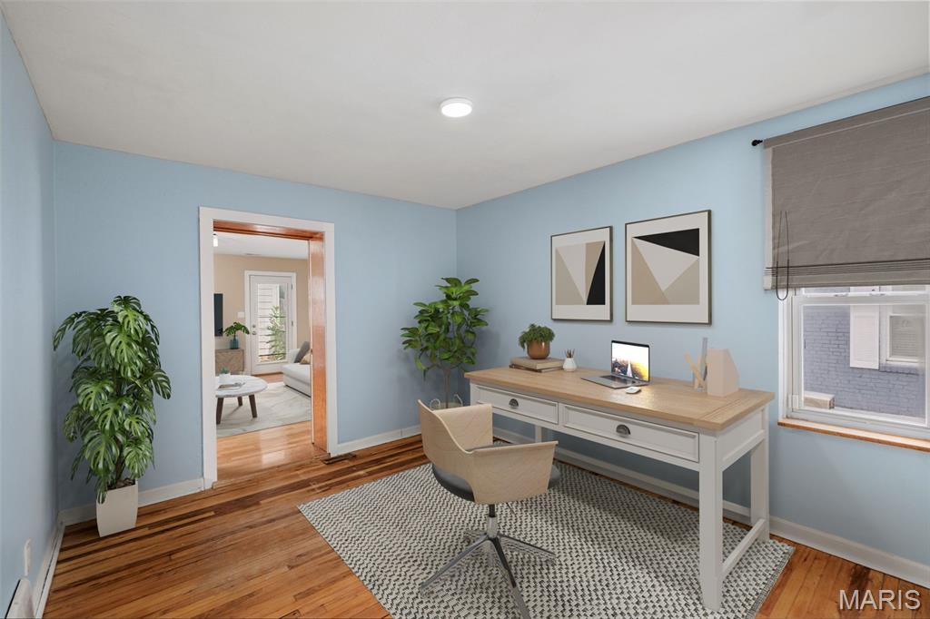MOTIVATED SELLER!! Come see all this home has to offer! Set back on a long driveway, this charming home offers potential in the highly sought-after Webster Groves School District. Ready for your personal touch, the home features solid bones and recent updates that set the stage for your cosmetic vision. Step into the cozy front living room, complete with a wood-burning fireplace and recently tuck-pointed chimney. The main level includes two bedrooms and a full bathroom. The second bedroom offers flexible use—perfect as a guest room, home office, or easily opened to the adjacent family room for expanded living space. Loft-style, primary bedroom on the second floor with ample closet space and large, primary bathroom. The updated kitchen features a full Frigidaire appliance set and opens into a sunny breakfast room. Downstairs, the partially finished basement includes a full bathroom and plenty of space to create a rec room, gym, or guest suite. Additional highlights include: * Washer/dryer hookups in the basement * 2-car detached garage with storage * 2-zoned HVAC system * New PVC sewer line * Tankless hot water heater Don't miss your opportunity to bring your vision to life in this well-maintained home. Fireplace being sold as-is.