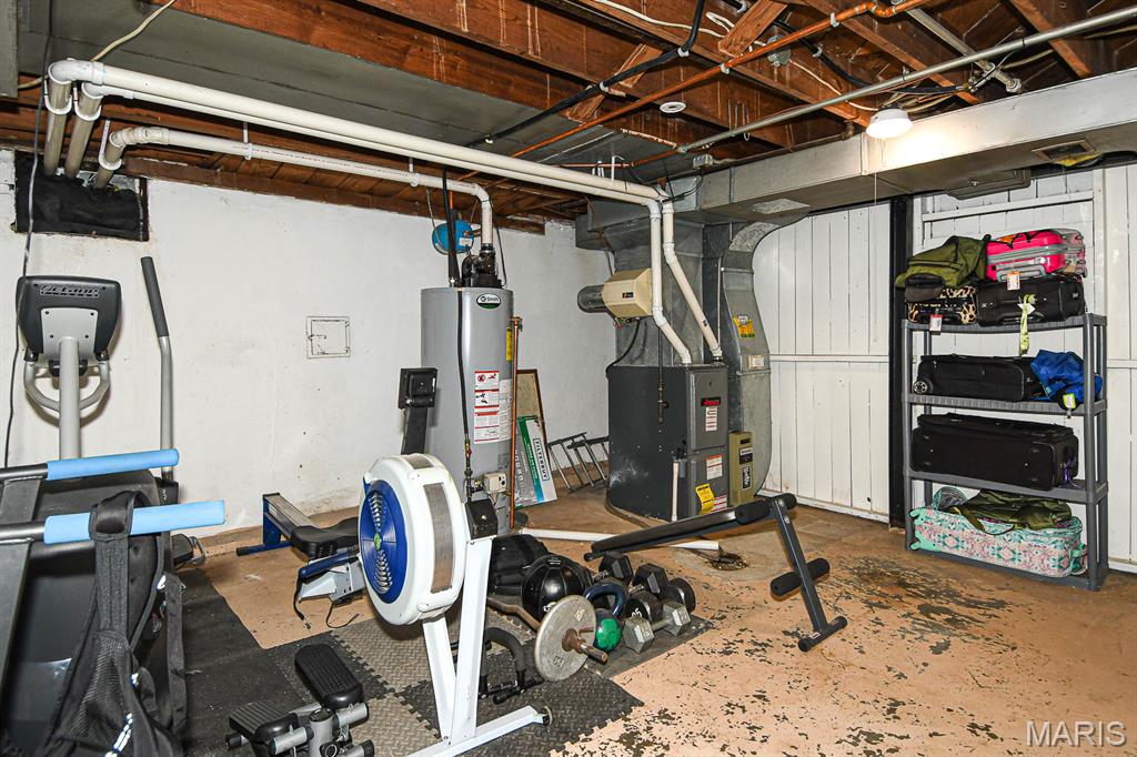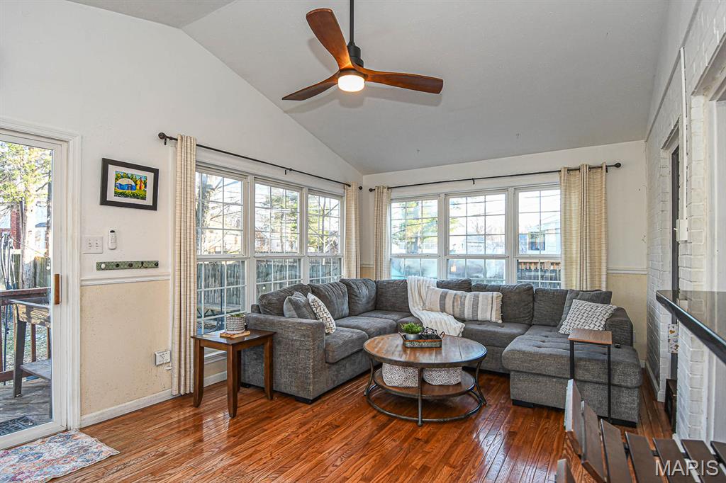Location, location...Welcome Home! Beautiful brick, 1.5 story - 4 bedroom, 2 full bath home in sought after Webster Gardens and Webster Groves School District. Natural light highlights the hardwood floors on the main level. Living room boasts wood burning fireplace and opens to separate dining room for entertaining. Kitchen has plenty of cabinet space, pantry, and breakfast bar that overlooks into family room. Spacious family room at back of the house offers extra space to spread out and overlooks the large, level backyard & patio. Down the hall find two ample sized bedrooms and full bath with tub/shower combo. Upstairs is the primary bedroom w/ walk-in closet, and bedroom 4 currently being used as home office. Updated full bath w/ tub/shower combo round out the second floor. Downstairs is the unfinished basement with plenty of storage and laundry area. This area has convenient access to the tuck under garage parking. (Excuse our Rubbermaid's....we are planning for a move!) Updates include: Roof, gutters, downspouts all in 2025; refinished hardwood floors, garage door & opener. Come take a peek!