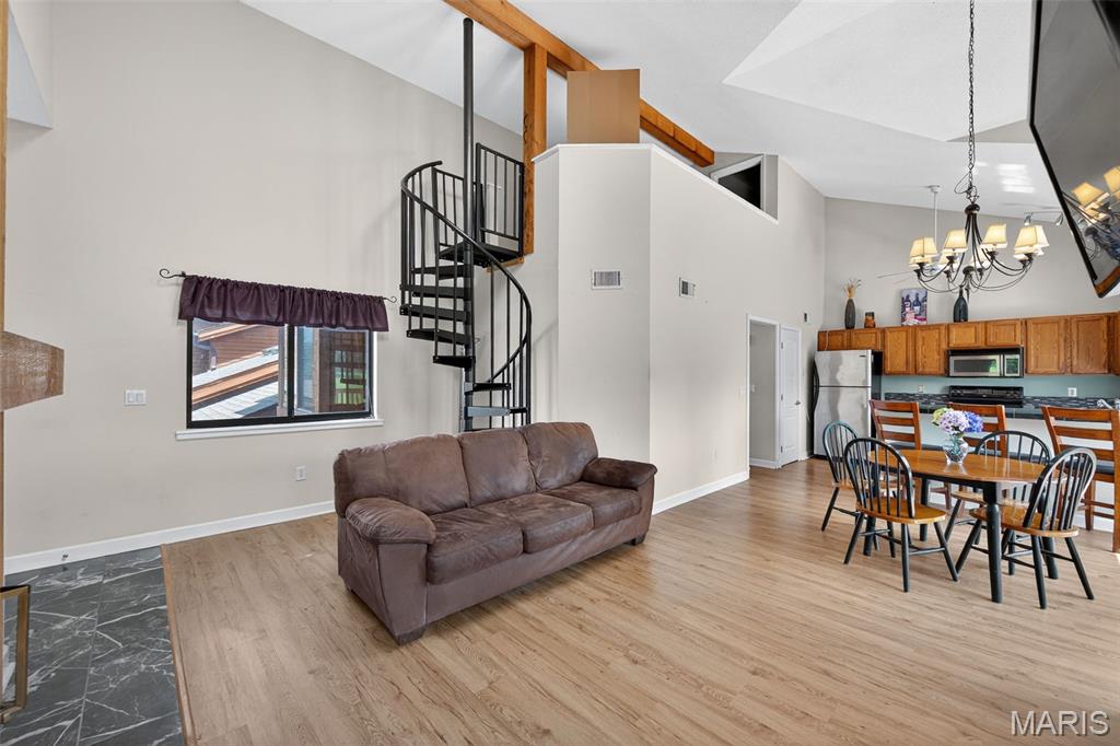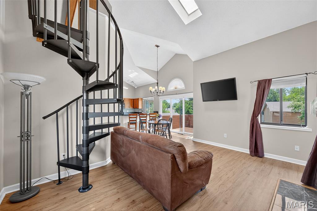 Investors update and sell for a profit! OR Looking for a get a great deal with all the outdoor maintenance covered? Move in and update at your pace. AS-IS sale. Make us an offer! This 2nd floor, end unit is conveniently located off HWY 94 & HWY 40/61. Walk into the open floor plan with a fireplace, vaulted ceilings and access to your private deck. The skylights, sliding door and windows let in lots of natural light. This unique floor plan features a main floor master and full bath, laundry, kitchen with lots of storage space with a spiral staircase leading up to a loft area with a 2nd full bath that could be an additional sleeping area. Newer Lenox HVAC System with an extended warranty. There is a tuck under garage with private steps leading into your condo. The Chapter One community features a pool, small stocked lake, tennis courts, side walks, club house and lots of green space to enjoy! Free yourself from outdoor yard work, landscaping and a majority of the outdoor maintenance that is taken care of by the HOA. All appliances stay including washer & dryer and TV. NO RENTALS ALLOWED. Give this wonderful condo a refresh and make a profit in the resale!